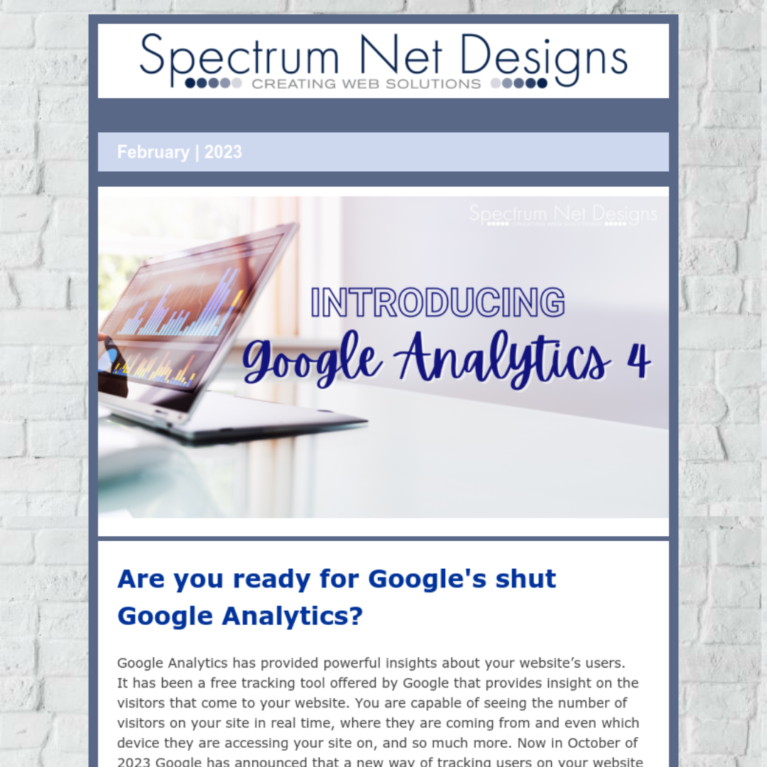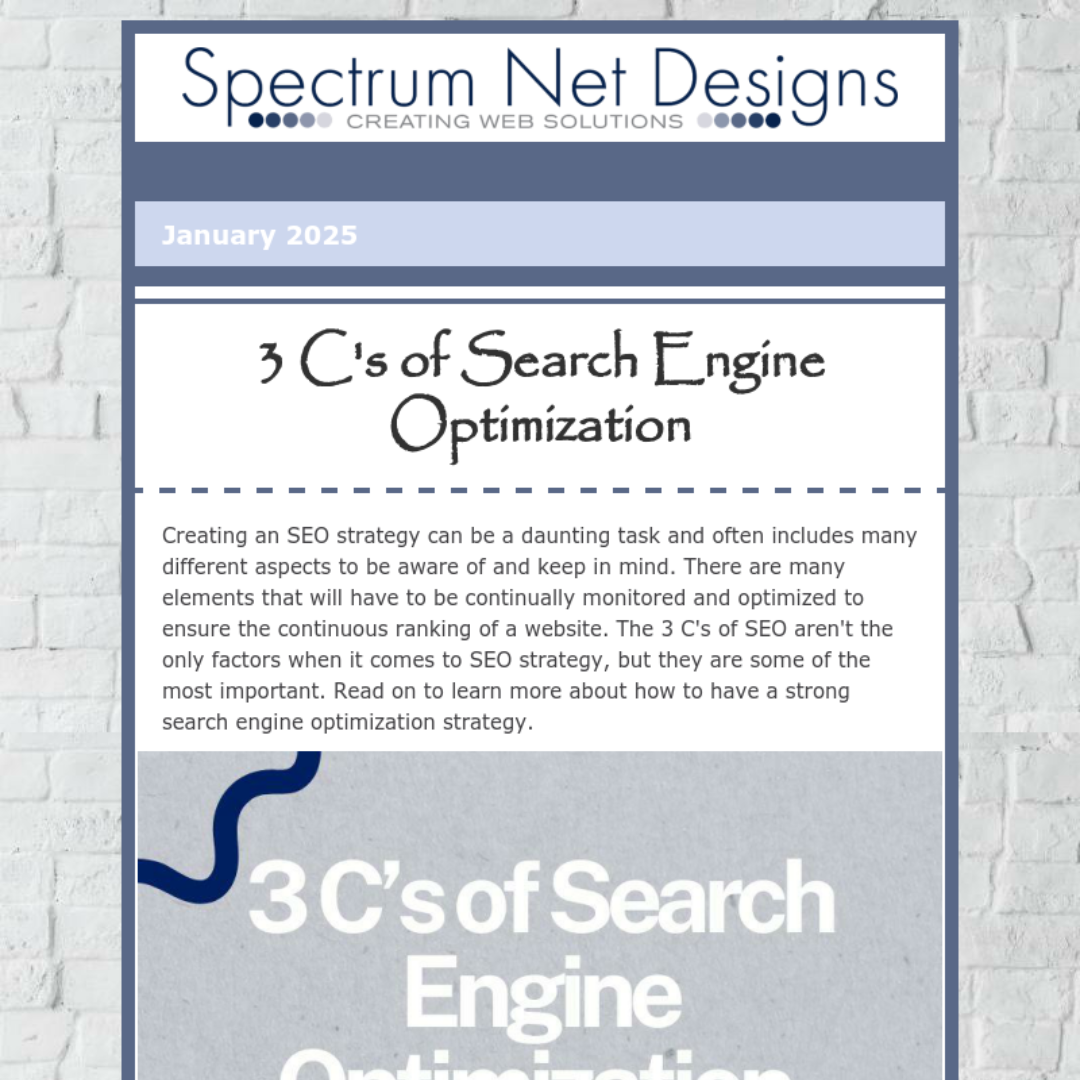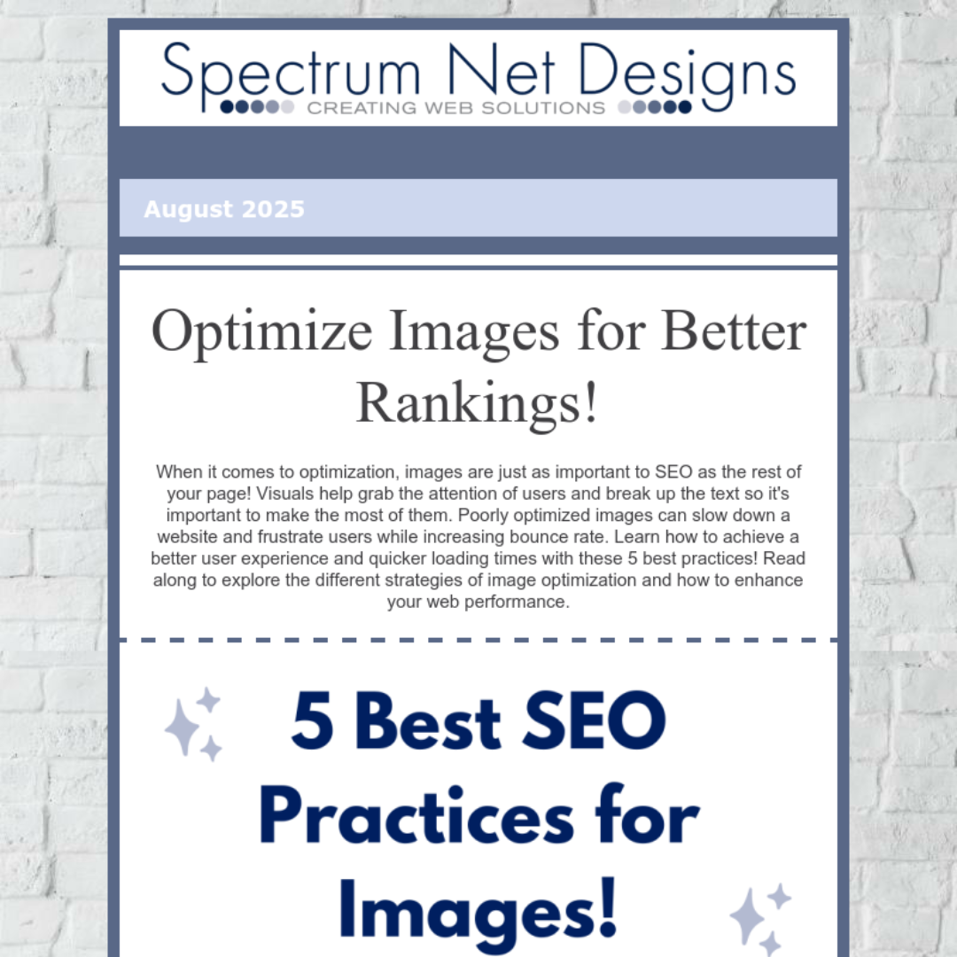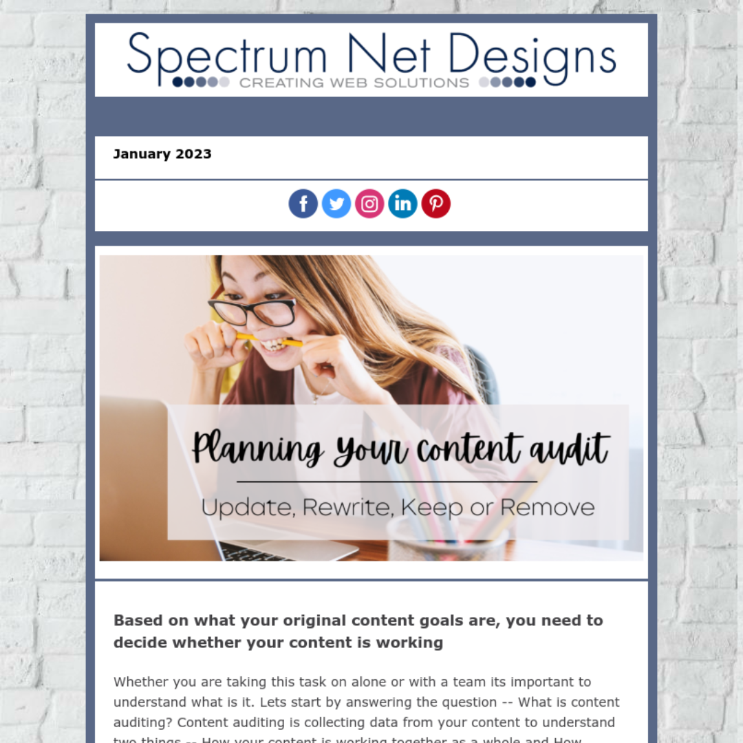 All across the country, students are headed back to school – online, in-person, or some combination of the two. Back to school is always so much fun. New classes, new supplies, and new things to learn. Just because you aren’t in school anymore doesn’t mean that you stop learning! Spectrum Net Designs is taking you back to marketing school in our next few newsletters! Stay tuned as we share our marketing knowledge with you. Class is in session!