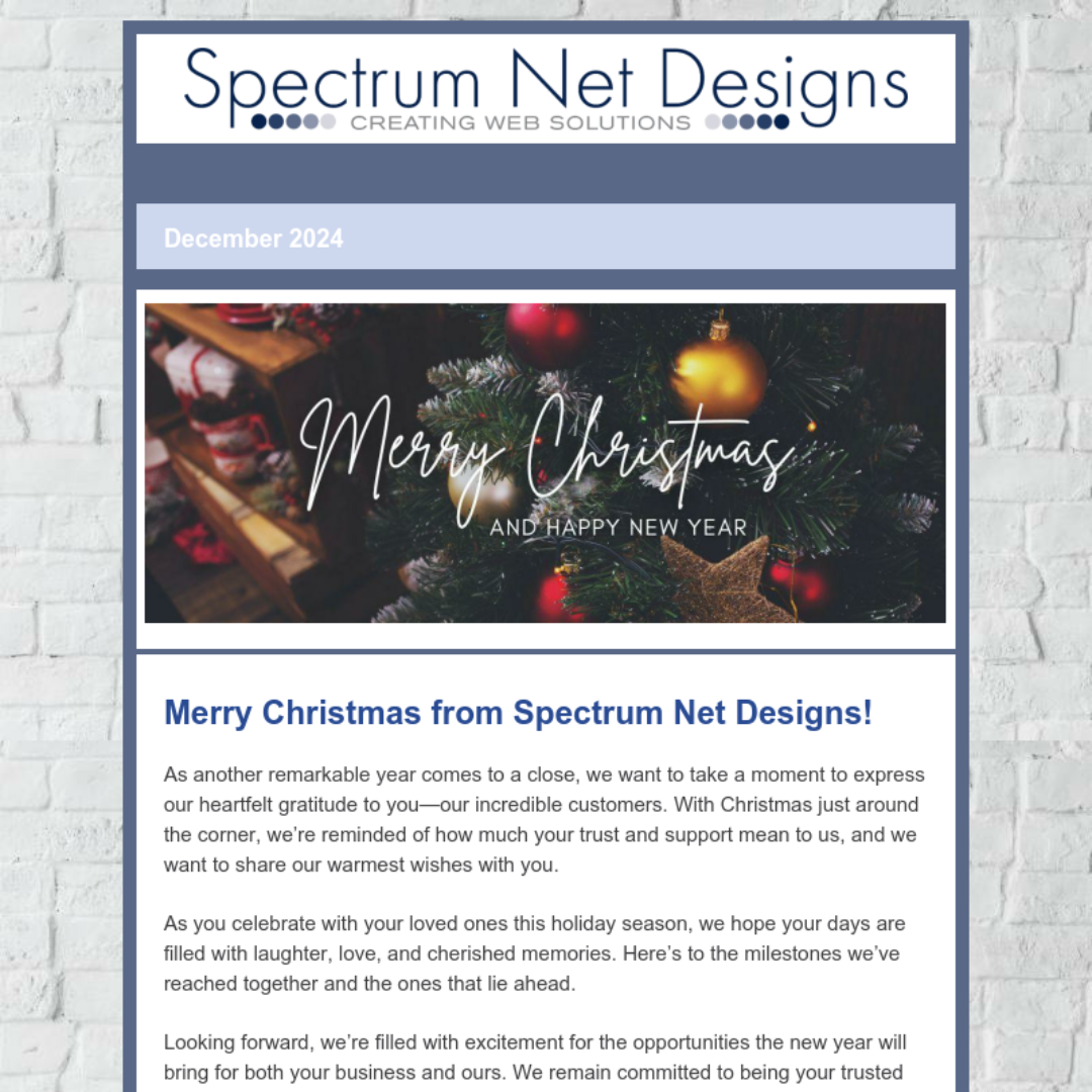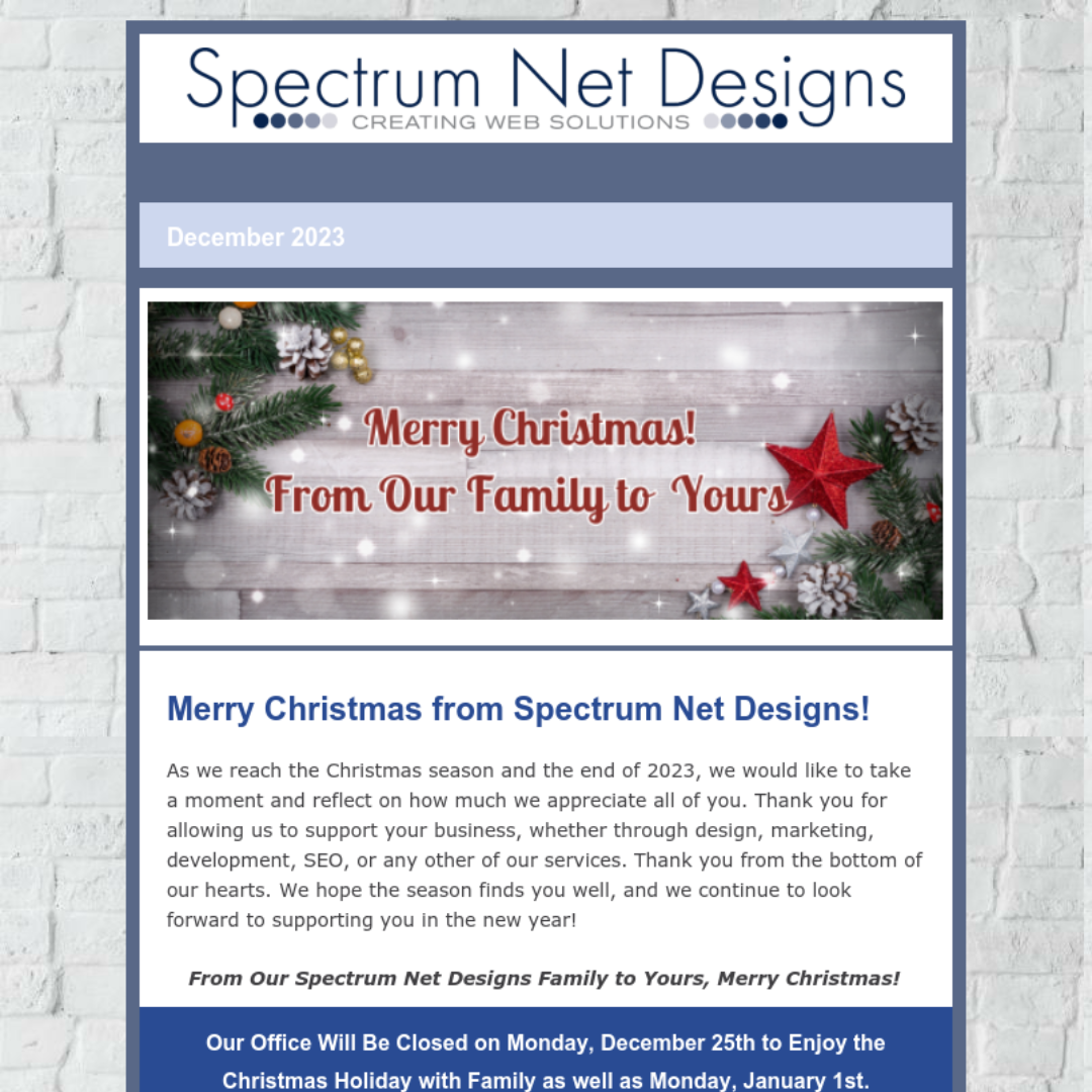 As we reach the Christmas season and the end of 2023, we would like to take a moment and reflect on how much we appreciate all of you. Thank you for allowing us to support your business, whether through design, marketing, development, SEO, or any other of our services.